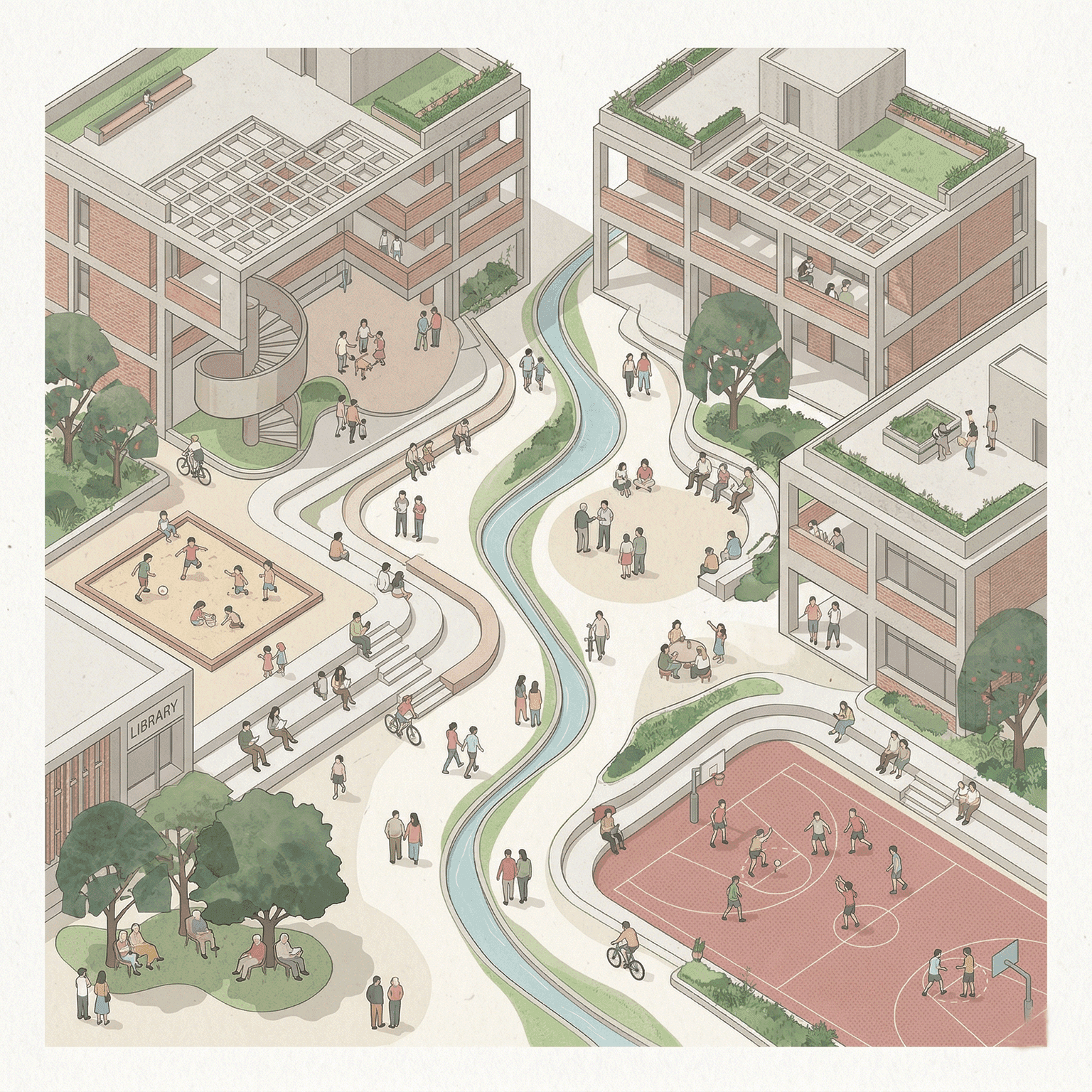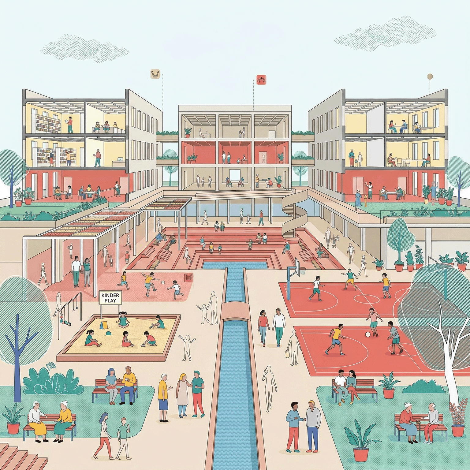 The core challenge lies in negotiating diversity within an urban public space accommodating multiple user groups, temporal shifts, and activity levels without spatial conflict. It must avoid becoming either overly programmed or underutilized, while maintaining openness and accessibility. Ensuring continuous engagement across day-night cycles and seasons further complicates the urban response.